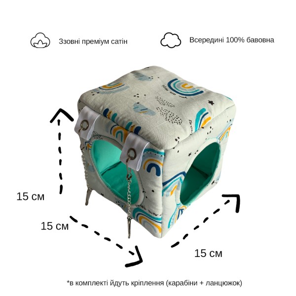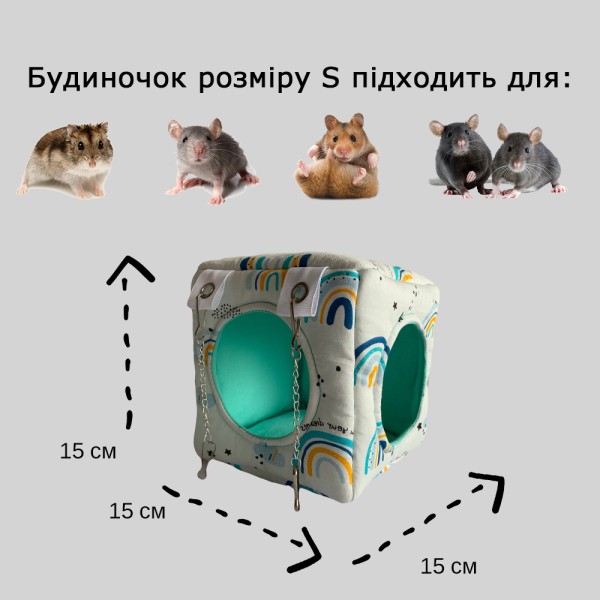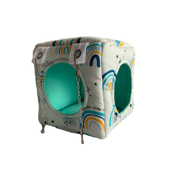 М'який будиночок з двома отворами для гризунів з принтом Веселки розмір S (15*15*15 см.)