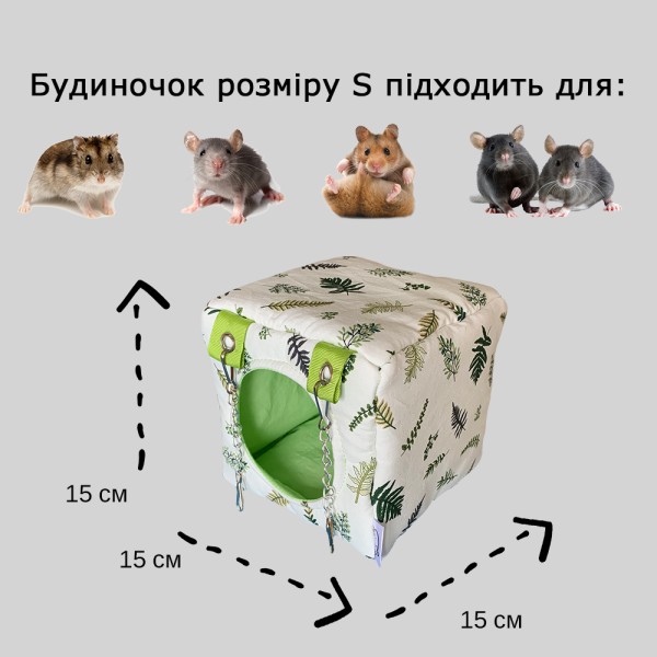 М'який будиночок для гризунів з принтом Папороть розмір S (15x15x15 см.)