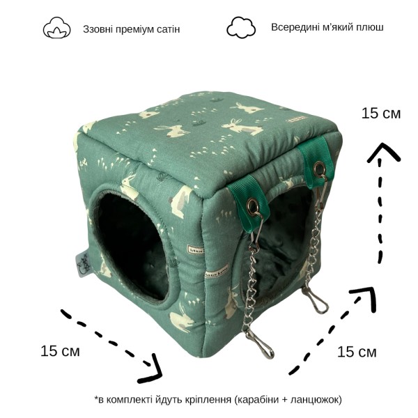 М'який будиночок для гризунів з двома отворами Зайці розмір S (15*15*15 см.)