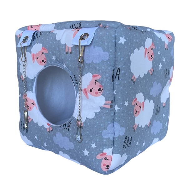 Квадратний будиночок "Гризюк" для гризунів з принтом Баранчики (сірий). З теплим й затишним будиночком "Гризюк" Ваш вихованець ніколи не нудьгуватиме, будиночок швидко стане одним з найулюбленіших місць у клітці, а всім відомо, що щасливий вихованець - здоровий вихованець! У м'якому квадратному гамачку дуже затишно спати та відпочивати. Підвісний квадратний будиночок "Гризюк" також може стати чудовим аксесуаром у клітці та надійним укриттям для вихованця.