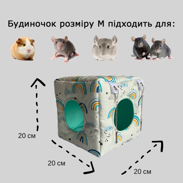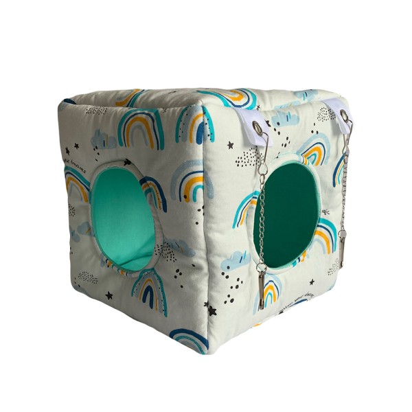 Кубічний гамак-лежанка підійде для відпочинку або ігор домашніх гризунів всіх розмірів. Форма цього гамака виглядає як куб який має 2 отвори, і в середині дуже м'якенький з усіх сторін. Розмір гамака 20*20*20 см, і він підійде до будь-якої клітки, а також його можна просто покласти, або підчепити на спеціальні карабіни які йдуть у комплекті. Такий тип гамаків урізноманітнить побут у клітці, та викликає інтерес у кожного гризуна.
