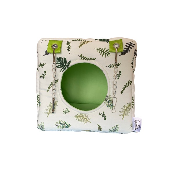 Квадратний будиночок "Гризюк" для гризунів з принтом Папороть(білий). З теплим й затишним будиночком "Гризюк" Ваш вихованець ніколи не нудьгуватиме, будиночок швидко стане одним з найулюбленіших місць у клітці, а всім відомо, що щасливий вихованець - здоровий вихованець! У м'якому квадратному гамачку дуже затишно спати та відпочивати. Підвісний квадратний будиночок "Гризюк" також може стати чудовим аксесуаром у клітці та надійним укриттям для вихованця.