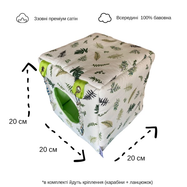 М'який будиночок для гризунів з принтом Папороть розмір M (20x20x20 см.)