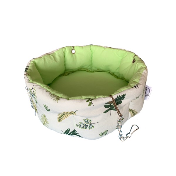 Круглий гамак-лежанка підійде для відпочинку або ігор домашніх гризунів всіх розмірів. Форма цього гамака виглядає як коло з бортиками, яке дуже м'якеньке з обох сторін. Діаметр гамака 20 см, підійде до будь-якої клітки, і його можна просто покласти, або підчепити на спеціальні карабіни які йдуть у комплекті. Загалом такий тип гамаків урізноманітнить побут у клітці, та викликає інтерес у кожного гризуна.