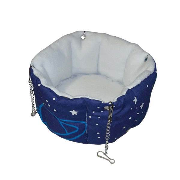 Круглий гамак-лежанка підійде для відпочинку або ігор домашніх гризунів всіх розмірів. Форма цього гамака виглядає як коло з бортиками, яке дуже м'якеньке з обох сторін. Діаметр гамака 20 см, підійде до будь-якої клітки, і його можна просто покласти, або підчепити на спеціальні карабіни які йдуть у комплекті. Загалом такий тип гамаків урізноманітнить побут у клітці, та викликає інтерес у кожного гризуна.