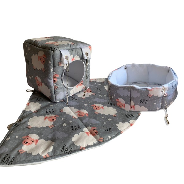 Набір будиночок М трикутний килимок і гамак - лежанка для гризунів Баранчики
