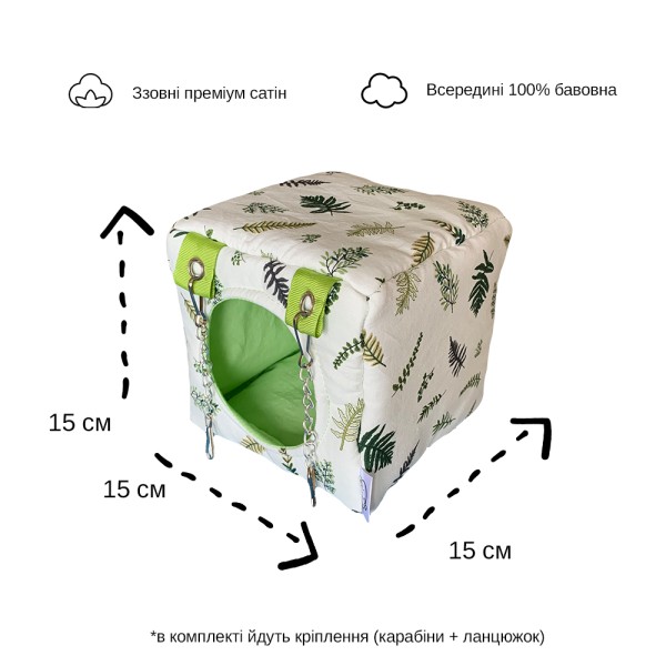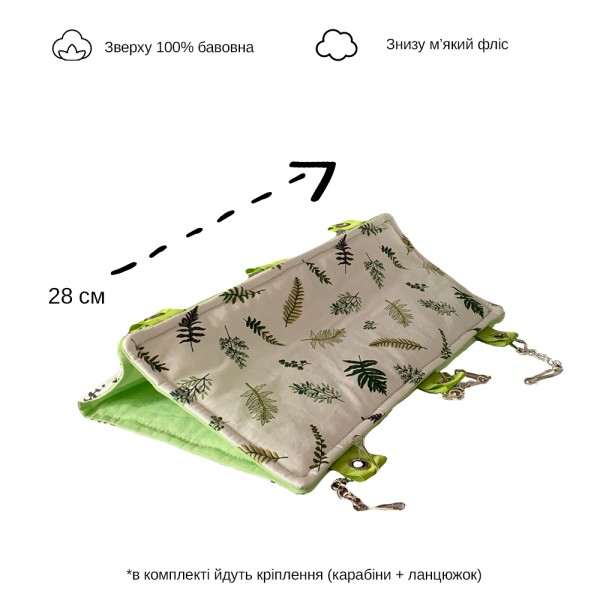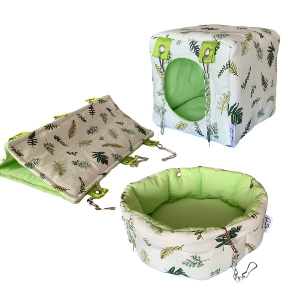 Набір лежанок для гризунів 3в1: будиночок S, гамак - труба та лукошко принт Папороть